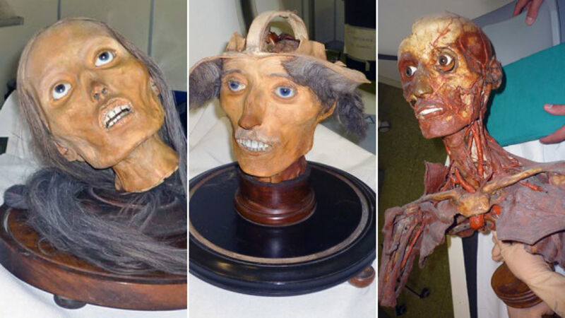A group of forensic anthropologists have completed a meticulous analysis of a set of real human anatomy displays from 19C Italy. Using CT scans and other chemical analysis, the group determined that, some 200 years ago, anatomist Giovan Battista Rini "petrified" the corpses with a mercury and other heavy metals. He injected some tinctures and used others as baths. The eyes are fake. Basically, Rini was modern medicine's first "Body Worlds" guy.