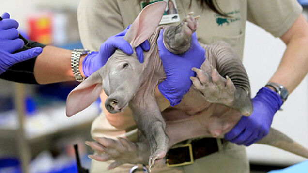 Chicago's Brookfield Zoo introduced a healthy baby aardvark to the media today. The baby was born on January 12, complete with all its aardvark fingers and toes and little aardvark nose. But you know what the newborn is missing? An aardvark vagina and/or penis! That little critter is over a month old and its sex has yet to be determined.