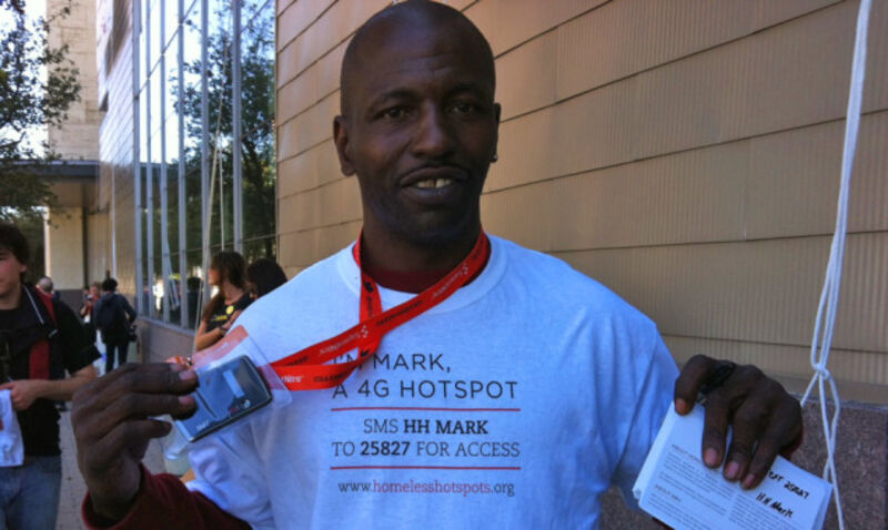 But outside the hulking Austin Convention Center today, Mark, a Homeless Hotspots who says he lost his job as an electrician due to the economy, seemed unimpressed by the debate raging over him on the internet.