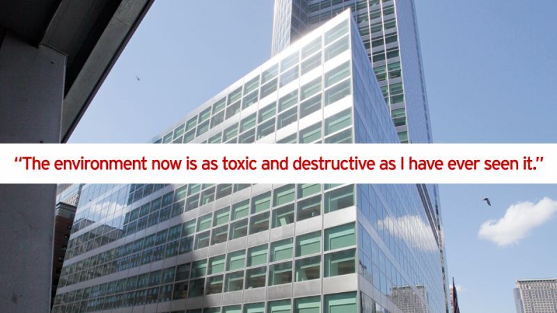 Smith writes that "the environment [at Goldman Sachs] now is as toxic and destructive as I have ever seen it" and he can "no longer look students in the eye and tell them what a great place this was to work." What's the problem?