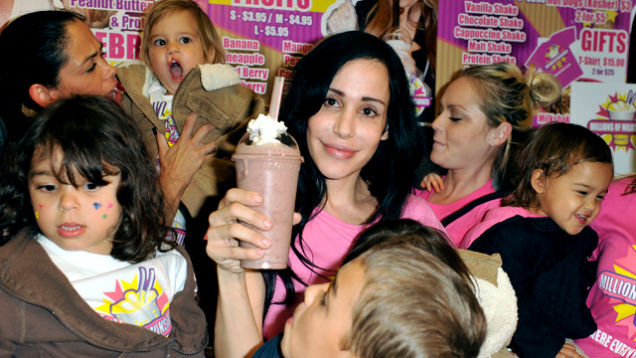 It seems like the only person who disrobes for the cameras more often than Lindsay Lohan is Nadya Suleman, she of the perpetually occupied womb. Here she is, posing topless for British mag Closer. They've cleverly employed the old flesh-colored undies trick, so the images are SFW.