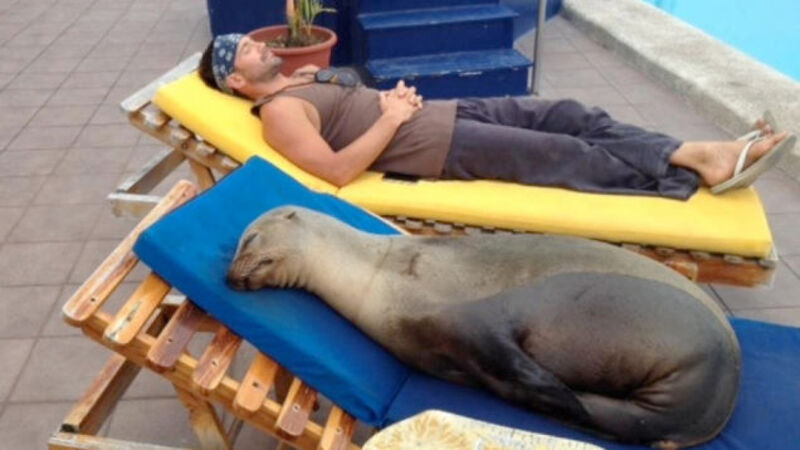 Some time ago Panchita was caught up in a net, which left deep cuts all over her body. She managed to make it to this hotel where animal advocates nursed her back to health for 3 months. Every day she returns to rest after being out to sea. She is now pregnant and expecting within a month.