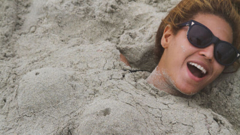 Sand boobs. What a fun gal.