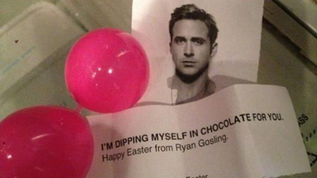 A Twitter account purporting to be Ryan Gosling is responsible for hiding 200 Gosling-themed eggs around New York City. Although it's doubtful that this is actually the actor's doing — he's never been that big on Twitter himself — it still feels like a delightful Easter miracle. Besides, if he's saving people from speeding cars, who's to say he's not helping everyone get in the holiday spirit with a citywide Easter egg hunt?