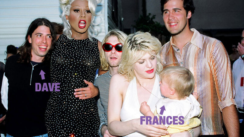 Courtney has a longstanding beef with Grohl, whom she accuses of wasting Nirvana's money and riding Kurt Cobain's coattails. He also knew Frances when she was a baby. (Above: Nirvana, RuPaul, Love, and Bean at the 1993 MTV Video Music Awards.) Courtney aired the story to @cbabymichelle's 795 followers last night, interspersed with rage tweets about Frances' boyfriend and rambling tweets about Buddhism. For the sake of clarity, we have arranged just the Grohl/Bean tweets into chronological order.