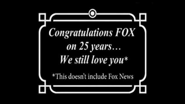 Never ones to let an opportunity to knock Fox News pass them by, The Simpsons' producers semi-surreptitiously inserted the above title card into the closing credits of the show's pilot episode, "Simpsons Roasting on a Open Fire," which reran last night as part of a night of programming honoring the Fox Network's 25 years on the air.
