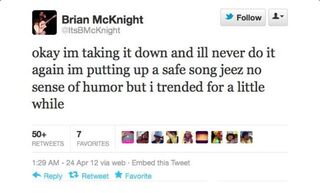 It's so ridiculous, because all of those ostensibly sensitive, buttery R&B ballads McKnight is responsible for are basically saying the same thing (or at least aiming for the same place). Also, this song is hilarious. But the feedback on Twitter and YouTube was too much for McKnight, who eventually removed the song while lamenting his diminished status in the music industry. Highlights from his Twitter are to the left (to the left).