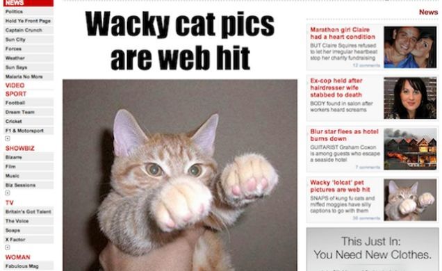 What a day for News Corp: First Rupert Murdoch is ruled by Members of Parliament to be unfit to run a major international company; then, The Sun publishes a press-halting exposé on the emerging trend of "wacky cat pics" allegedly "wowing the web."
