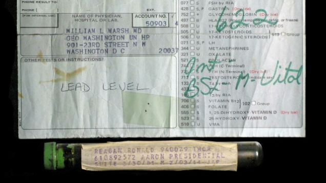 The vial is alleged to have been obtained by the seller's mother from the Bio Science Laboratory in Columbia, Maryland. Reagan's blood was sent there for lead testing in the aftermath of his failed assassination in 1981. According to the seller, his mom was granted permission by the lab director to take the five-inch glass vial home.