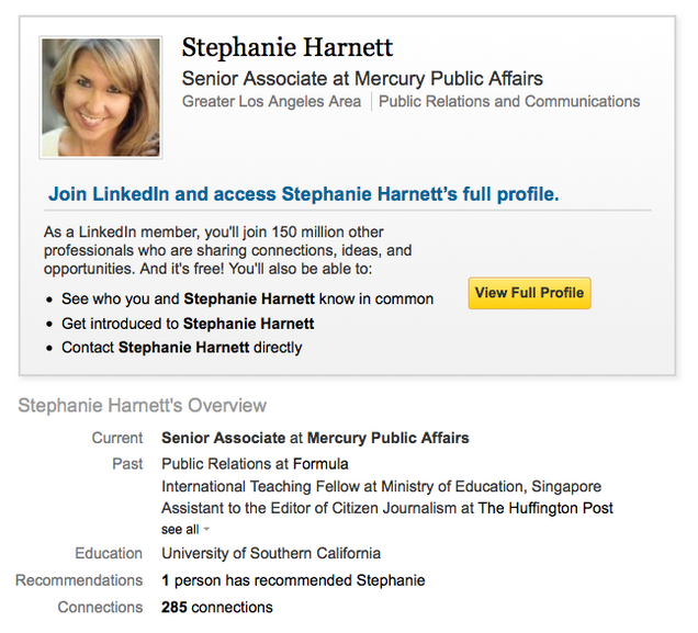 Stephanie Harnett is, indeed, an associate at Mercury Public Affairs—which, as you can see here, is being paid $60,000 to assist Wal-Mart on the Chinatown issue. WWU has photos of Harnett posing as "Zoe Mitchell." And since WWU asked its followers to scold Harnett on Twitter today, Harnett's Twitter page has been deleted.