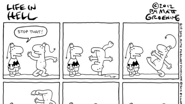 Sisyphean is right: The strip's rock has been steady rolling downhill for years. Once appearing in some 380 newspapers across the country, Life in Hell was ultimately dropped by all but 38 outlets, and earned Groening a whopping $18 bucks per paper per week.