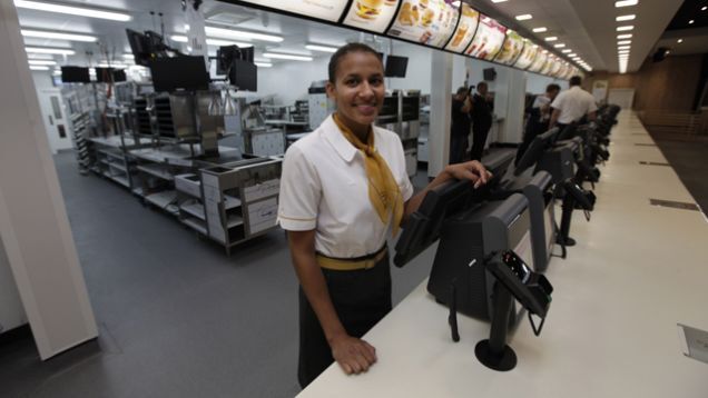 The Guardian reports that the place will be staffed by 2,000 "hand-picked" "top-performing" employees, which means you can one hundred percent guarantee someone involved has described the gig as "a sort of Olympics for McDonald's employees." These folks will be wearing sad mustard-colored uniforms inspired by the fashions of Mad Men, an AMC drama series about an elite group of fast food employees. (Though they're rolling them out for the Olympic crew first, the uniforms will eventually become standard for all U.K. McDonald's employees. Everyone is Mad Men now. It's a very chic time to be alive.)