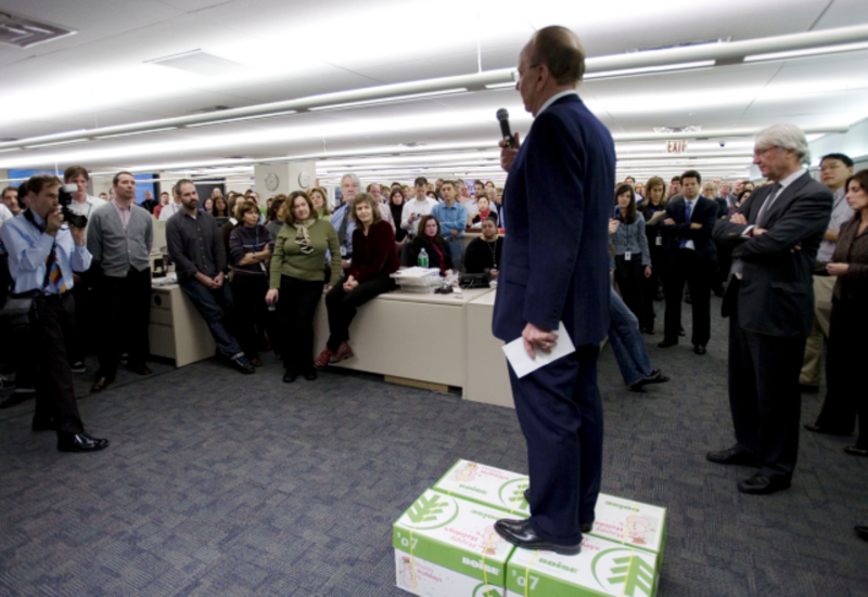 • 4. When Rupert dies, dissolve the News Corp newspaper division and sell off all of the individual papers. Sell them back to wealthy local owners who are interested in them for the prestige value and can afford to own a newspaper without worrying about screeching shareholders. Would Eli Broad or a similar rich titan like to own the LA Times? Sure. Would Mike Bloomberg like to own the WSJ? Sure. And some asshole (Mary-Kate Olsen?) would probably like to own the NY Post, whatever. The point is: there's little upside to newspaper chains any more. Let a local rich guy have it and fund it. It will ultimately be better for everyone that way.
