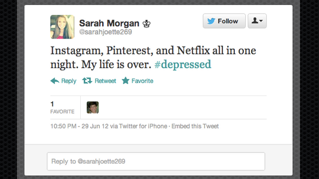 But few of us are that rational in moments of panic. @NigglyPie wrote, "OMFG NETFLIX YOU FUCK-SHIT I WAS WATCHING MY NAME IS EARL FUCK YOU FUCK YOU FUCK YOU FUCK YOU FUCK YOU FUCK YOU FUCK YOU FUCK YOU FUCK YOU." @emmwalt was equally distressed, if not as caps lock-reliant: "Wow pinterest fuck you too. I just want to look at cool stuff and you won't let me #NOTcool"