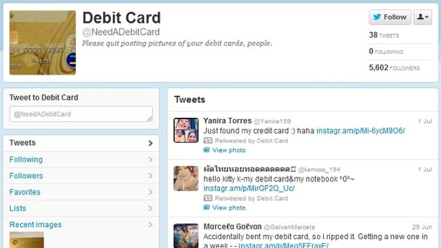 @NeedADebitCard is a single-serving Twitter account that aims to convey one very important message: "Please quit posting pictures of your debit cards, people."