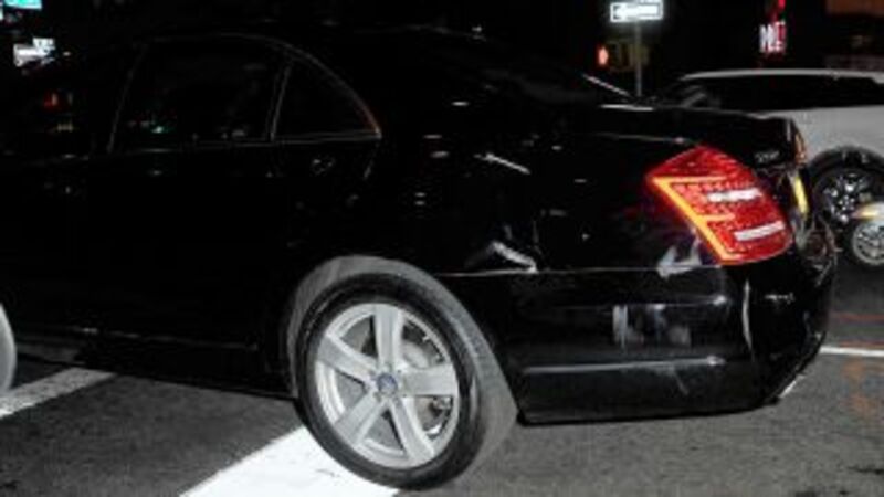 The dented Mercedes was seen last night being towed up tenth avenue, covered by an enormous old banana peel-an old gym shoe with a hole in the toe dangling from a side mirror-surrounded by chirping cartoon dizzy birds.