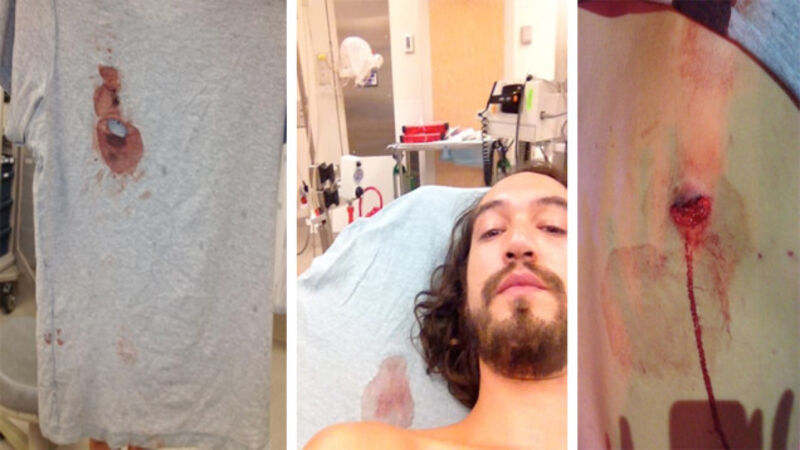 On Instragram, also under the name themurderator, an image of the bullet wound was posted with the introduction, "SO… THIS IS WHERE THE BULLET GRAZED MY BACK… LONG STORY."