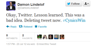 This is one of those days where something terrible has happened and we're left to digest both the tragedy itself and the Internet's own messy response to the tragedy, a response that is equal parts informative, vitriolic, sympathetic, self-absorbed, and at times utterly unnecessary. Lost co-creator Damon Lindelof found out how hard it is to navigate such choppy waters when he sent out this tweet earlier today: