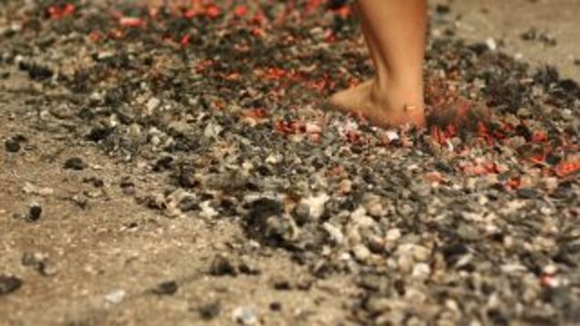 Firewalking is about mind over matter: you repeat a mantra and walk slowly across the coals, and your feet don't get burned. Kim thinks this particular firewalk suffered from poor organization.