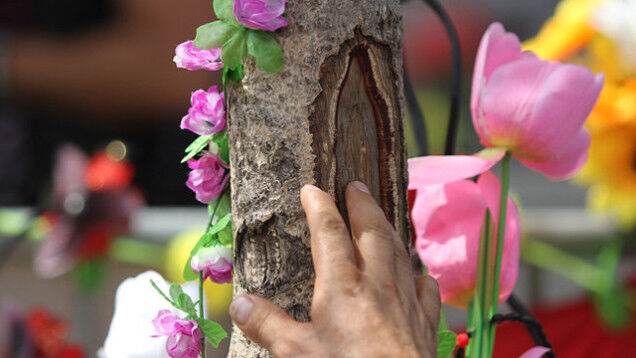 "Many say that a dark outline around the edge of the knot depicts the cloak the Virgin Mary wore when she first appeared in the New World.