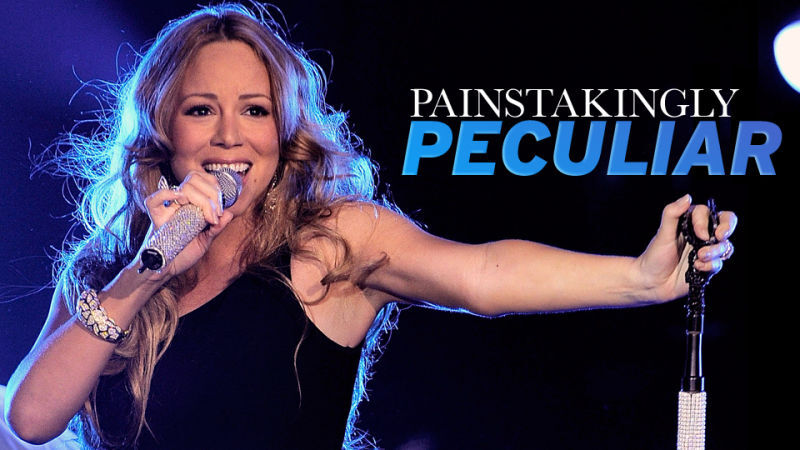 Regardless of her virtual absence, “Triumphant” is classic Mimi in that its name is the sort of gratuitous, multi-syllabic vocab word that she has relied upon throughout her career. She’s known for her ridiculous album titles that either conjure Lisa Frank with compound nouns (Music Box, Daydream, Butterfly, Rainbow, Charmbracelet) or read like inside jokes babbled by Precious Moments figurines (The Emancipation of Mimi, Memoirs of an Imperfect Angel). But that’s hardly the extent of her strange relationship with English. Her lyrics are littered with, as she might say, peculiar words that suggest she is a vocabulary booster enthusiast. She loves her some adverbs. The result is a body of words that are rarely, if ever, heard in pop music. They are below.
