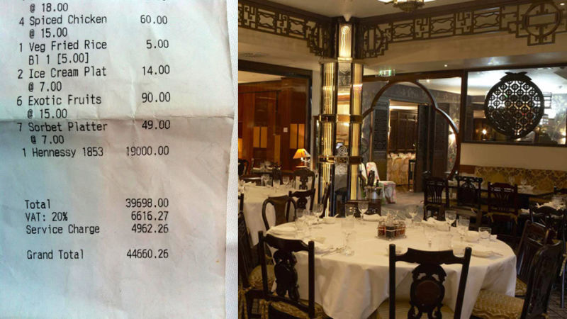 This receipt, with its grand total of £44,660 — about $70,000 — was posted on Reddit yesterday with the headline "My friend's a waiter and this is a receipt for an official lunch for 15 Olympic Bosses. Now we see where all the money's going..." We found the restaurant where the supposed lunch took place.