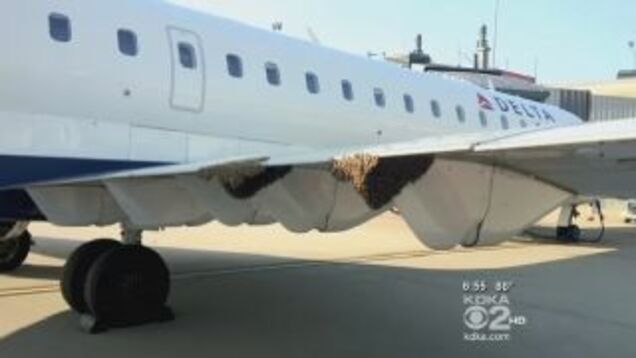 Passengers aboard a New York-bound Delta commuter flight were forced to deplane Wednesday night after Pittsburgh International Airport employees discovered a cluster of honey bees clinging to the jetliner's wing.