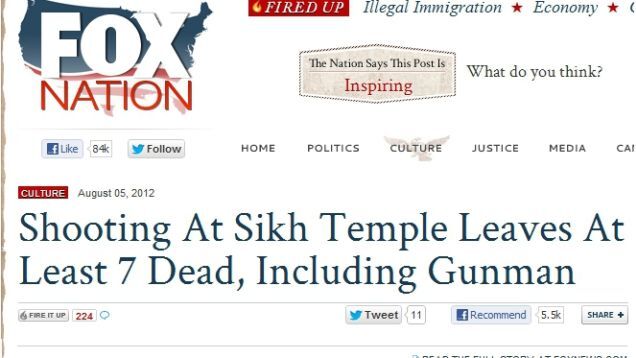 Over at Fox Nation, the Fox News forum where "real Americans" gather "to speak out on important and controversial issues," users have overwhelmingly found yesterday's Sikh temple shooting story to be "inspiring."