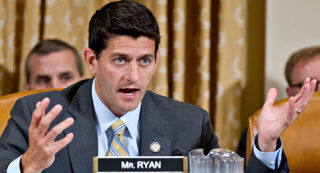 "At first glance, Ryan looks uncannily like a grown-up Eddie Munster. His gloomy expression, gray complexion and huge widow's peak make him look like some baleful predator. It's just a guess, but his favorite cartoons growing up were probably the "Goodbye Blue Sky" part of The Wall and every sequence in Watership Down when Fiver sees the fields being torn like flesh and the warrens pumping blood like arterial soil. But watching him on the Wisconsin primary trail, humping Romney's leg with the charisma of an autistic undertaker, Ryan looked positively Orthogonian. He's Nixon without the jowls, the education or vision. Ryan has the most famously ill-fitting suits and sweat-beaded upper lip since we booted Dick's ass into exile at San Clemente. And he has the personality and soulless ambition to match. If Paul Ryan didn't have government with which to minister suffering, illness and contempt unto millions, you could easily imagine him applying for a hot new fastracked position as the H.R. Director at a death camp."