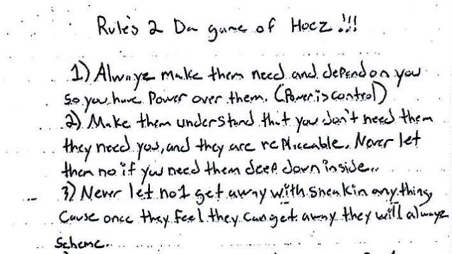 Cops in Long Island have just released a (charmingly handwritten) document titled "Rule's 2 Da game of Hoez!!!" seized from the home of the alleged ringleaders of a prostitution and heroin operation.