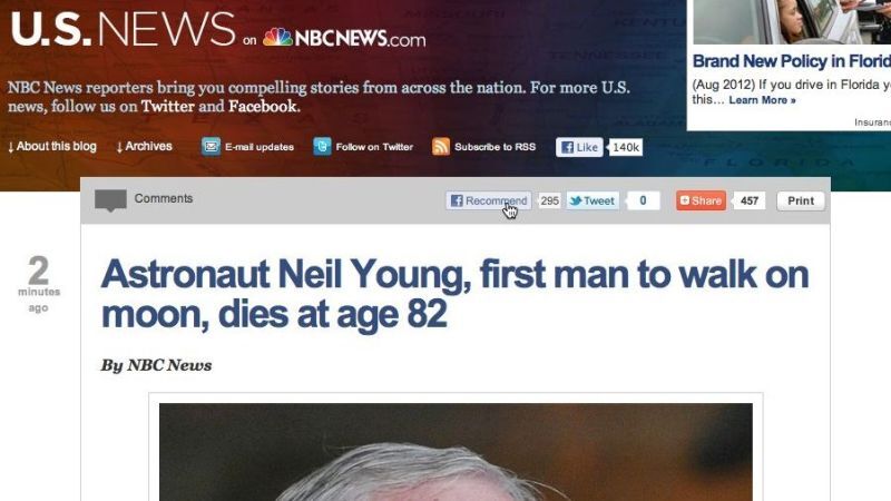 NBC News may have been the first to report on the death of astronaut Neil Armstrong — but that was only after they mislabeled him as "Neil Young."
