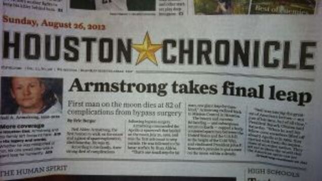 Reader Kate S. sent in this headline from the Houston Chronicle — "Armstrong takes final leap."