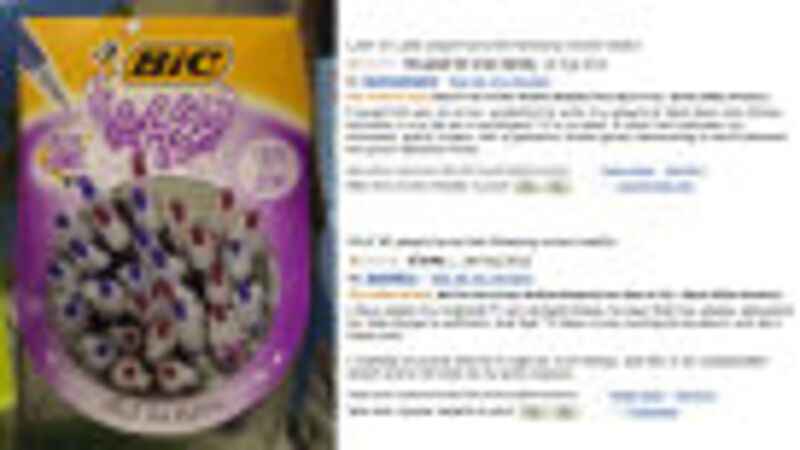 For reasons we can't fathom, Bic has a line of "for her" pens — "Designed to fit comfortably in a womans hand" and with an "Attractive barrel design available in pink and purple." For reasons we can totally understand, Amazon reviewers find these pens very funny.