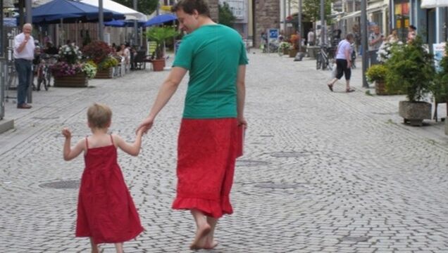 And what's the little guy doing by now? He's painting his fingernails. He thinks it looks pretty on my nails, too. He's simply smiling, when other boys ( and it's nearly always boys) want to make fun of him and says: "You only don't dare to wear skirts and dresses because your dads don't dare to either." That's how broad his own shoulders have become by now. And all thanks to daddy in a skirt.
