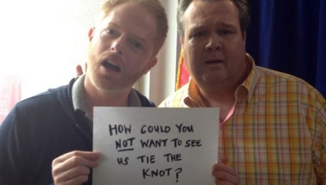 Co-creator Steve Levitan was "thrilled" at the news, but couldn't pass up the opportunity to snark a bit about it on Twitter. "We'll offer her the role of officiant at Mitch & Cam's wedding. As soon as it's legal," he tweeted, referencing Modern Family's beloved gay couple.
