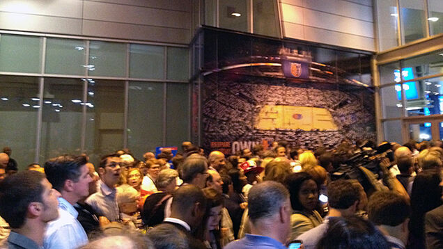 9:36 (Hamilton): Chaos is the order of the day here in the Time Warner Cable Sucks Arena. The press has contended with police and bad wi-fi connections already, in addition to bad seats. Nevertheless, we are here. Politics! What a crowd in here! I can report: a full house tonight.