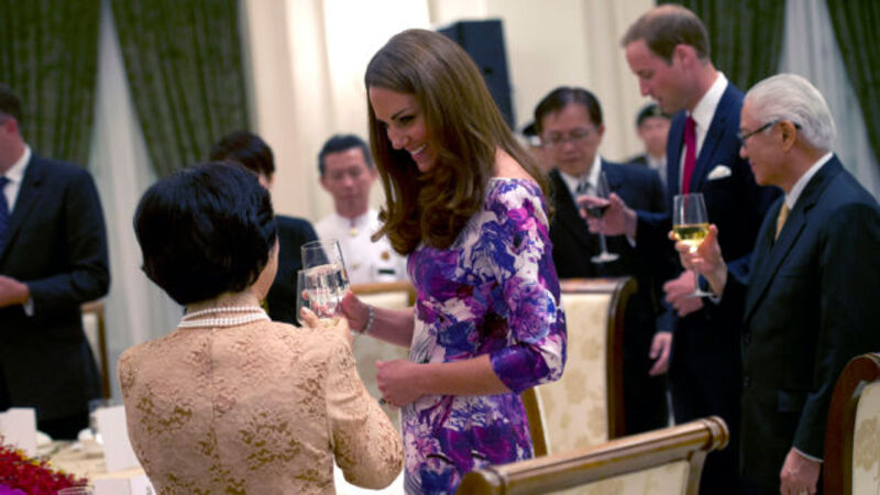 The Daily Beast reports that Kate Middleton toasted the Queen twice at a diplomatic dinner in Singapore last night, eschewing her wine for what was either water or vodka or both.