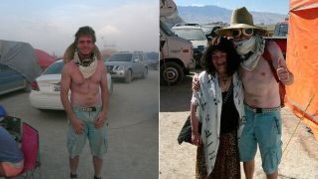 Sollecito's book is called Honour Bound: My Journey To Hell And Back With Amanda Knox. The journey he refers to, of course, is his journey to jail over the murder of Meredith Kercher, and not his journey to Burning Man, which is extensively document on Facebook and was not accompanied by Amanda Knox. Still, looks like fun! Photos via the Mail: