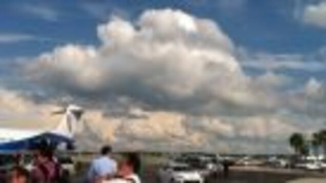"Ha, ha. We're in the stretch, aren't we?" Romney replied before directing Ward's attention to the sky with his finger and adding, "look at those clouds. It's beautiful. Look at those things."