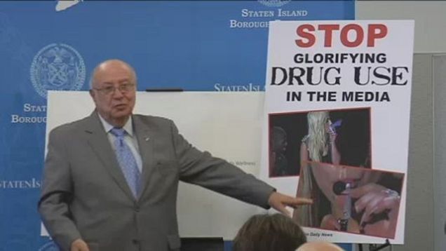 Speaking at yesterday's unveiling of a new anti-substance abuse initiative, Staten Island Borough President James Molinaro took shots at Lady Gaga for allegedly glorifying drug use in the eyes of today's impressionable youth.