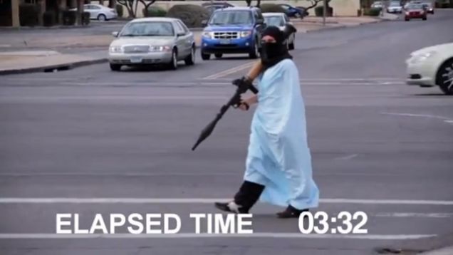 About a week after the shooting in Colorado, Michael David Turley decided to see how long it would take local police to respond to a potentially lethal terror threat, and sent his 16-year-old nephew out into the streets dressed in typical terrorist garb and armed with a fake rocket-propelled grenade launcher.