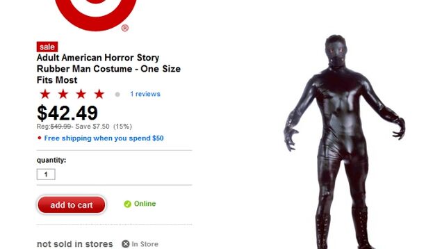 Just make sure to ask for the "Adult American Horror Story Rubber Man Costume" and not a "bondage suit" because they don't sell those. This is just your regular, run-of-the-mill "Rubber Man Costume." Pay no attention to "Gimp," the lone guest reviewer, who suggests the addition of "loops and hooks for attachments." This is absolutely not a bondage suit.