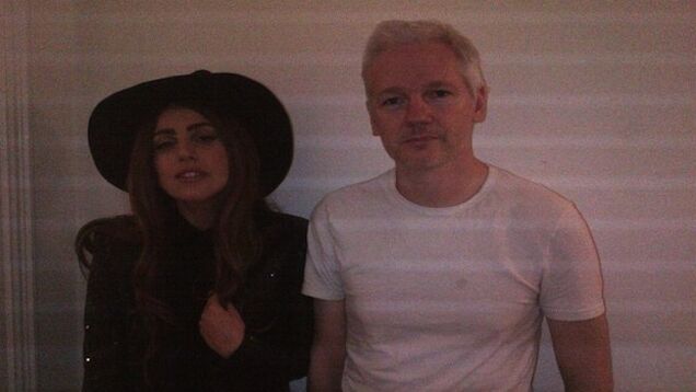 Having recovered from her onstage vomiting in Barcelona, Lady Gaga paid a visit to Julian Assange in his sanctuary at the Ecuadorian Embassy in London tonight. The two met because...well, it's not exactly clear why they met.