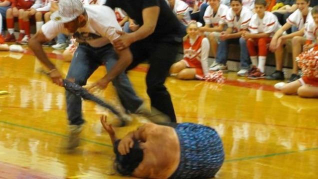 But what happened at that pep rally went much farther than simple cheers. Three white students were to perform a skit in black face, depicting Chris Brown and Rhianna most notibly. In this skit they would display acts of domestic violence as satire to an audience that included not only students but parents, faculty, and various members of the media and community leaders. None of them stopped the skit.