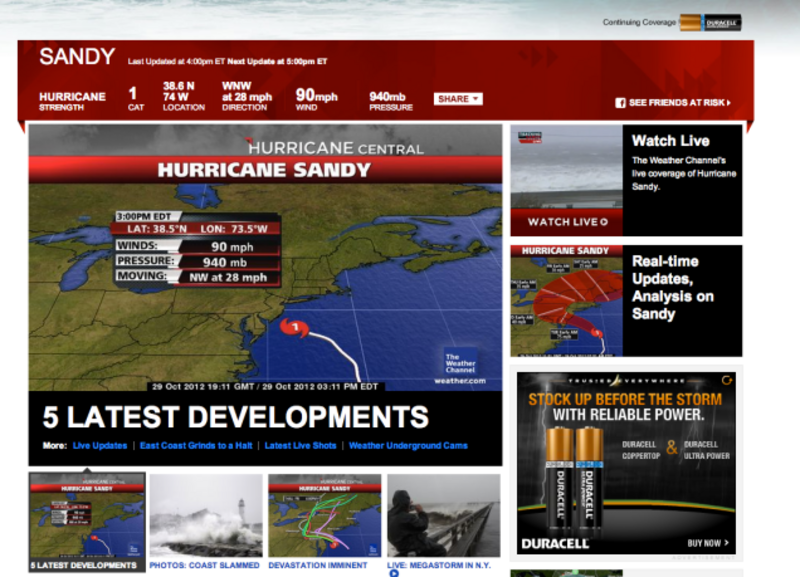 Log on to the Weather Channel's website to get the latest update on Hurricane Sandy and you may see what looks like a handy tool in the top right corner: "See friends at risk."