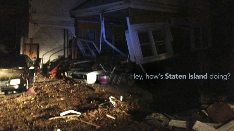 Here are some of the pictures we took like the evil tourists we were—but none of the exhausted cops and cleanup crews seemed too annoyed by our presence unless we stepped on a fallen power line and made their jobs more difficult. So if it makes you feel good to help go to Staten Island Recovers and see what you can do, but lugging over blankets and cans of soup won't do a whole helluva lot.