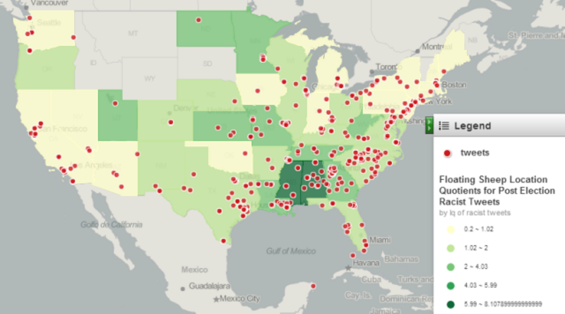 Mapping Racist Tweets in Response to President Obama's Re-election [Floating Sheep]