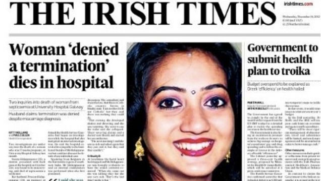 Savita Halappanavar, who was 17 weeks pregnant at the time, eventually developed a life-threatening infection to which she succumbed a week later.