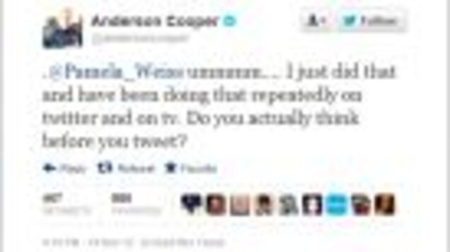 "Report a fair story. Report facts," Weiss admonished Cooper. "Ummmm.... I just did that and have been doing that repeatedly on twitter and on tv," Cooper shot back. "Do you actually think before you tweet?"
