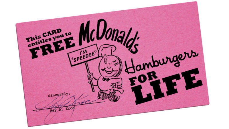 And then there is this curious aside: "In fact, he often used a card his father got for helping out the McDonald's founders to get free hamburgers for life."